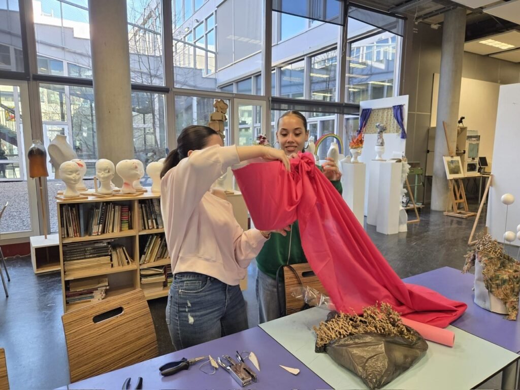 De leerlingen kregen bij de start van de opdracht ook een gastles in circulaire economie. Ze leerden o.a. hoe van oude kleding nieuwe stof kan worden gemaakt.